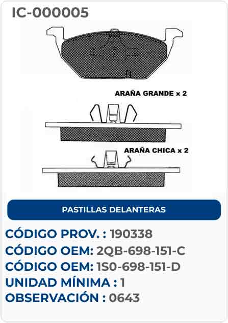 PASTILLAS DELANTERAS 2QB-698-151-C - 1S0-698-151-D