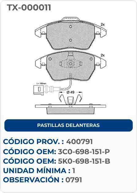 PASTILLAS DELANTERAS 3C0-698-151-P