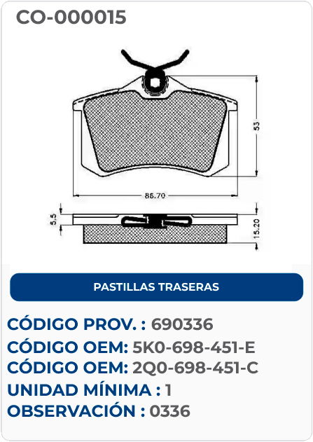 PASTILLAS TRASERAS